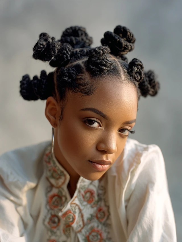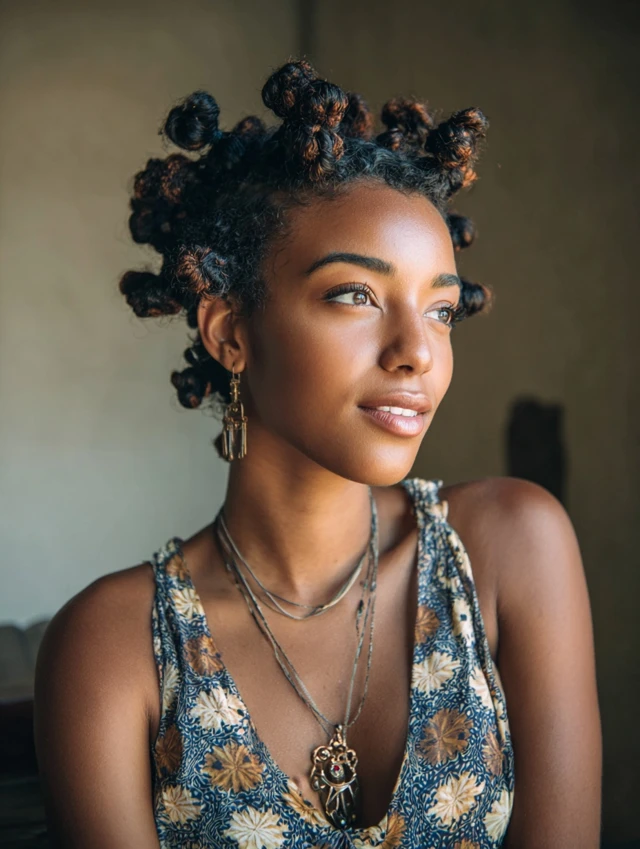 Bantu knots protect hair while giving a chic, cultural style.