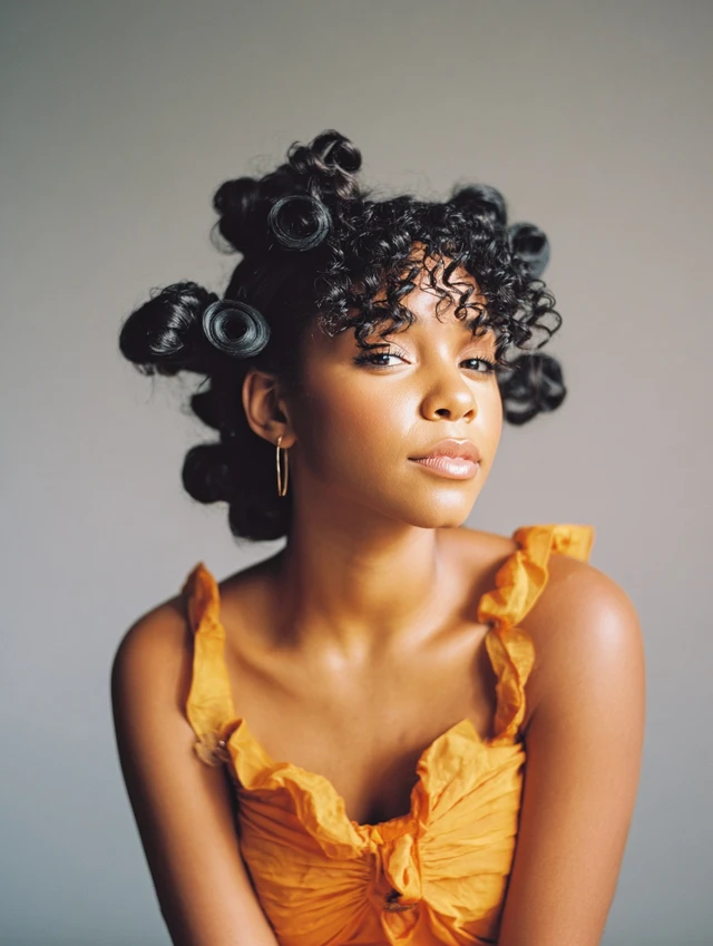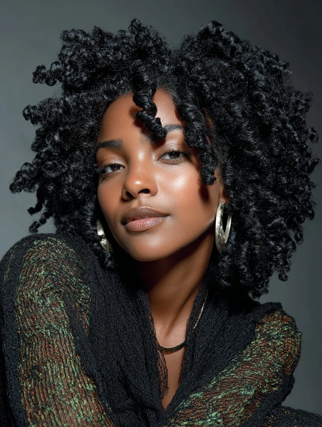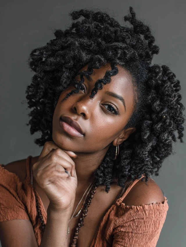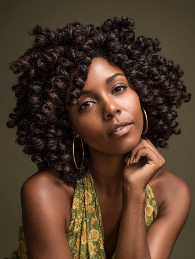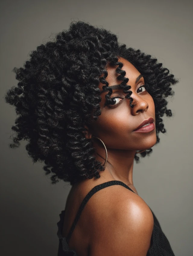 Section hair and twist into small knots. Let them set overnight or air-dry. After removing, you can wear the curls as a twist-out style. Maintenance is moderate, and it protects hair ends from breakage.