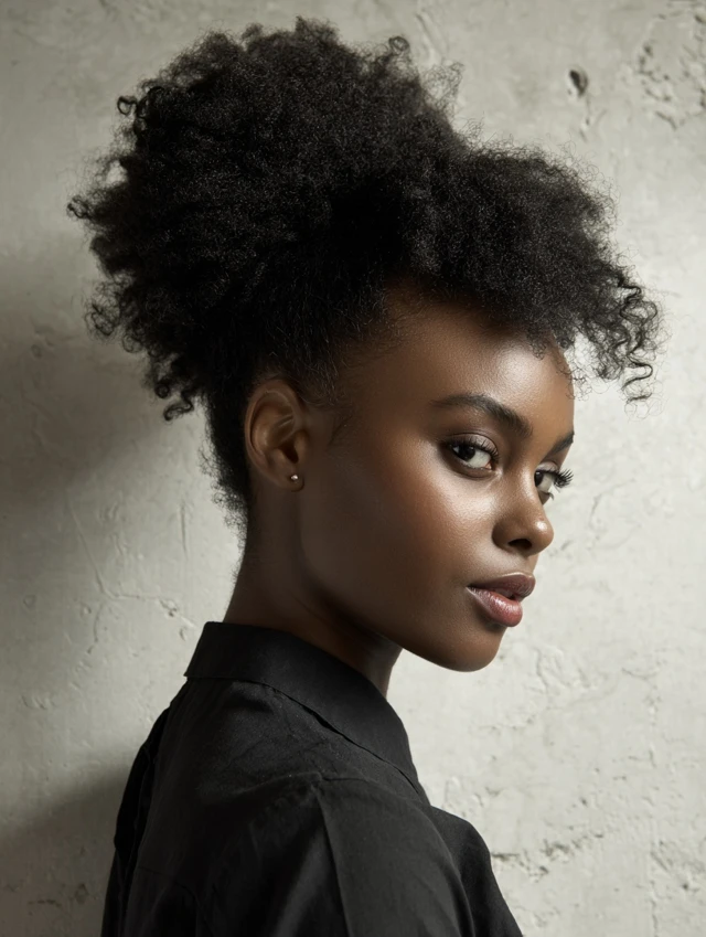 Moisturize and detangle hair, then gather into a puff with bands or pins. Maintenance is simple, but daily moisturizing is key to retain softness. Ideal for casual, professional, or statement looks.