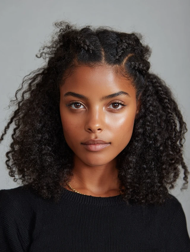 This style balances manageability with style. The top half can be twisted or braided, while the bottom is left loose. Works well for all face shapes.