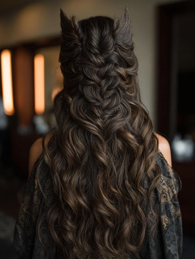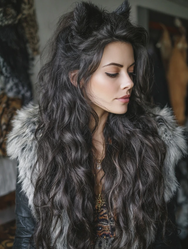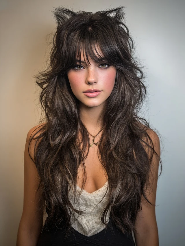 This butterfly wolf cut keeps dramatic length with high crown layering. The shorter top sections add lift while the bottom layers flow smoothly. It works well for thick hair.