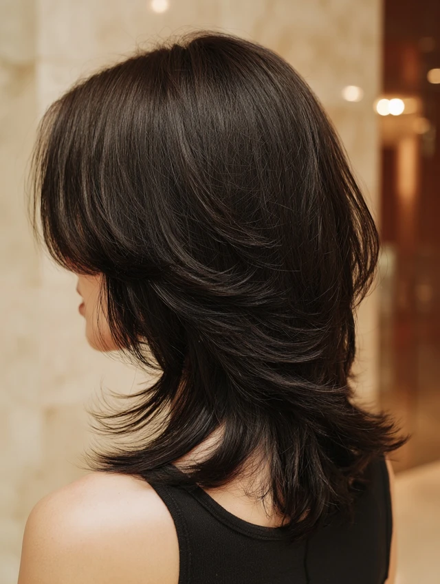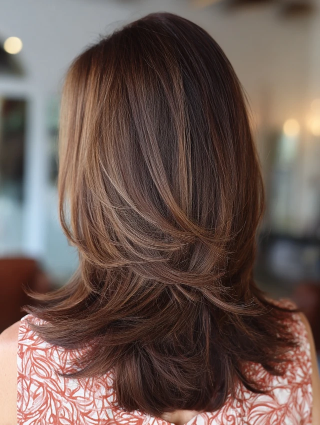It also flatters many face shapes. Round faces gain vertical length. Square faces soften with feathered edges. Oval faces handle the layered structure easily. Because the layers blend, the look stays airy rather than harsh.