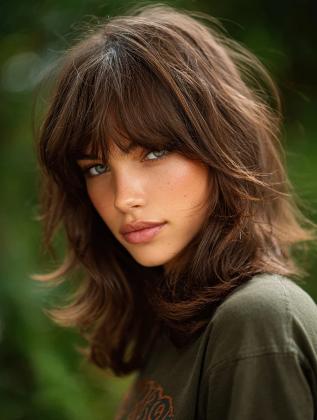 Blow-dry the bangs outward for softness. Keep the rest textured but light. This style feels romantic yet structured.