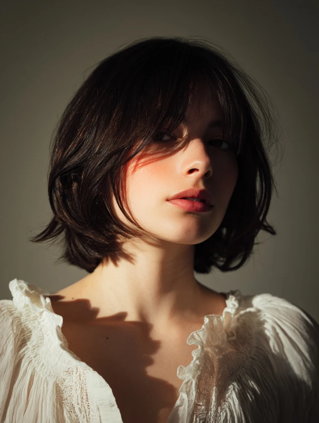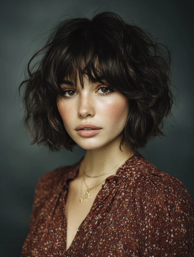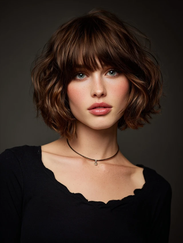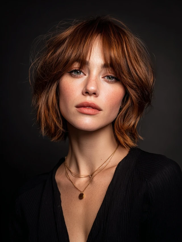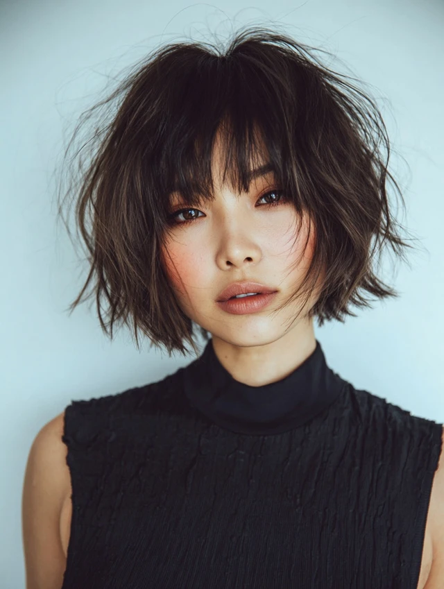Uneven layers soften the perimeter, while airy bangs keep the front light. The texture adds movement and avoids a helmet-like shape. Oval and heart-shaped faces handle this style especially well.