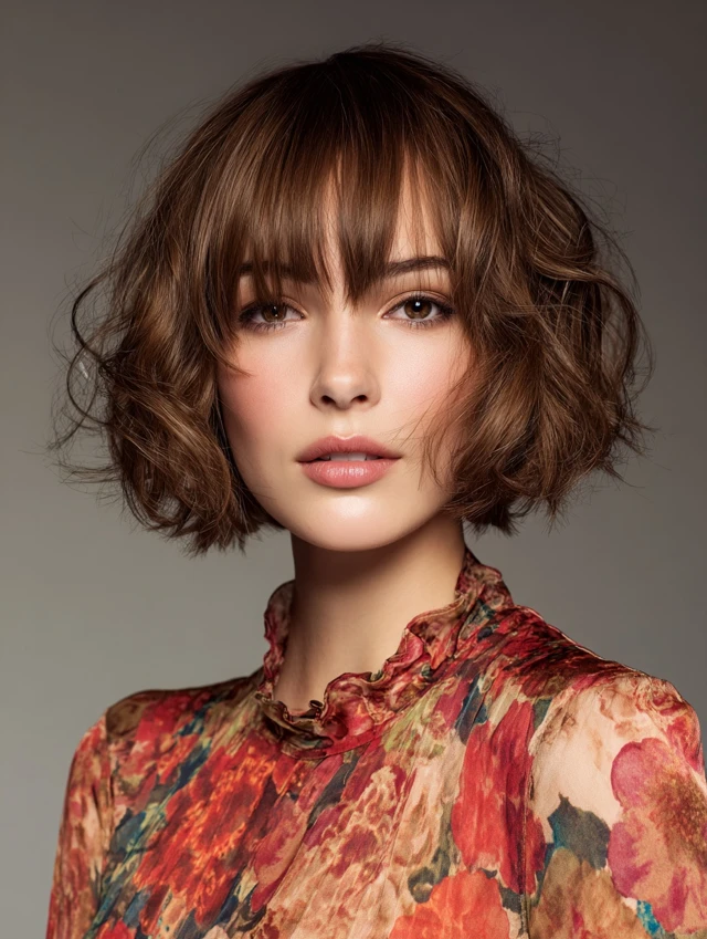 Chin-length bob hairstyles with bangs combine sharp structure with soft framing. The short length defines the jawline, while bangs pull attention toward the eyes and cheekbones. Together, they create balance and instant polish. This haircut suits women who want something fresh but not extreme. It works across straight, wavy, and curly textures and adapts easily to casual or professional settings. With the right layering and fringe style, a chin-length bob with bangs can slim, soften, or sharpen facial features while keeping daily styling simple and realistic.