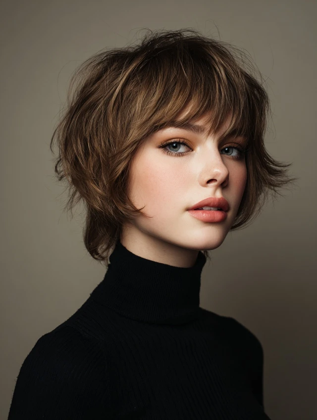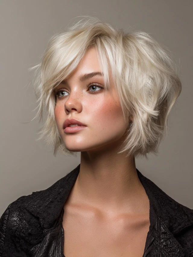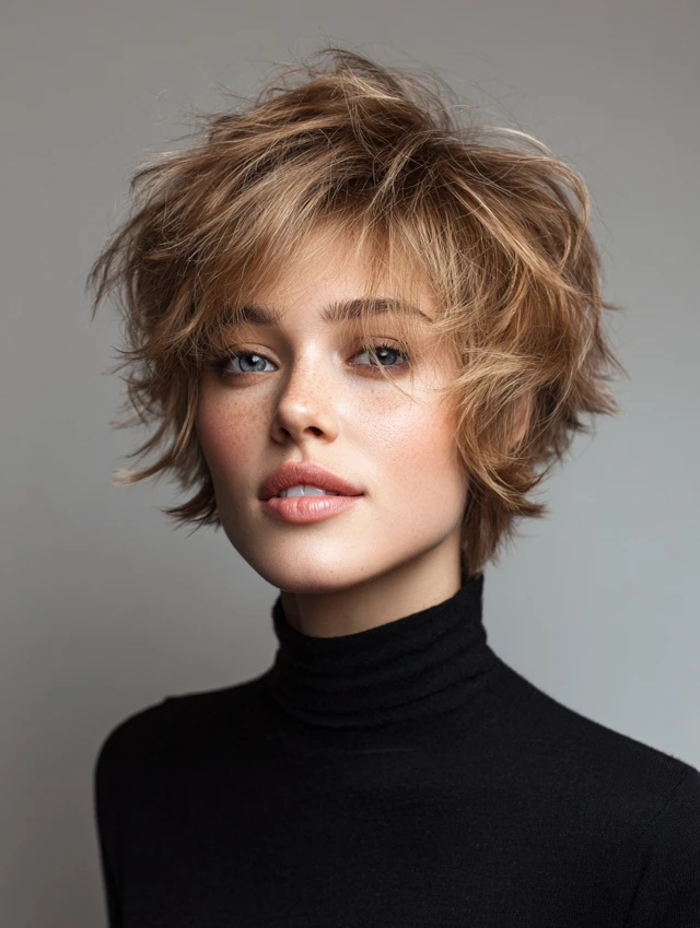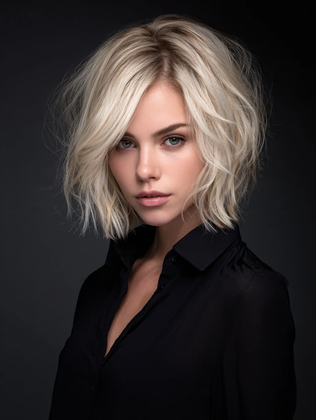 This version stacks light layers at the crown while keeping the perimeter soft. The height balances facial features and avoids a limp silhouette. Oval and round faces benefit from the vertical lift.