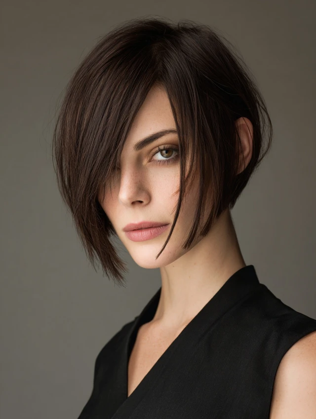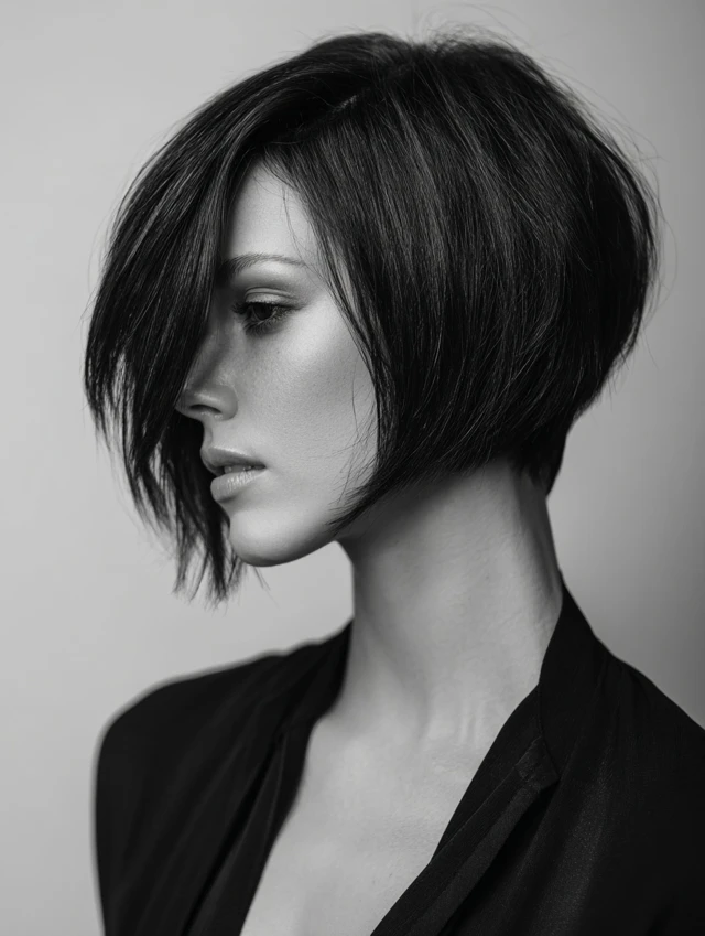 Best on straight or slightly textured hair. Flat-iron lightly to define shape. This version fits modern offices and fashion-forward tastes. Frequent trims keep the angle sharp.