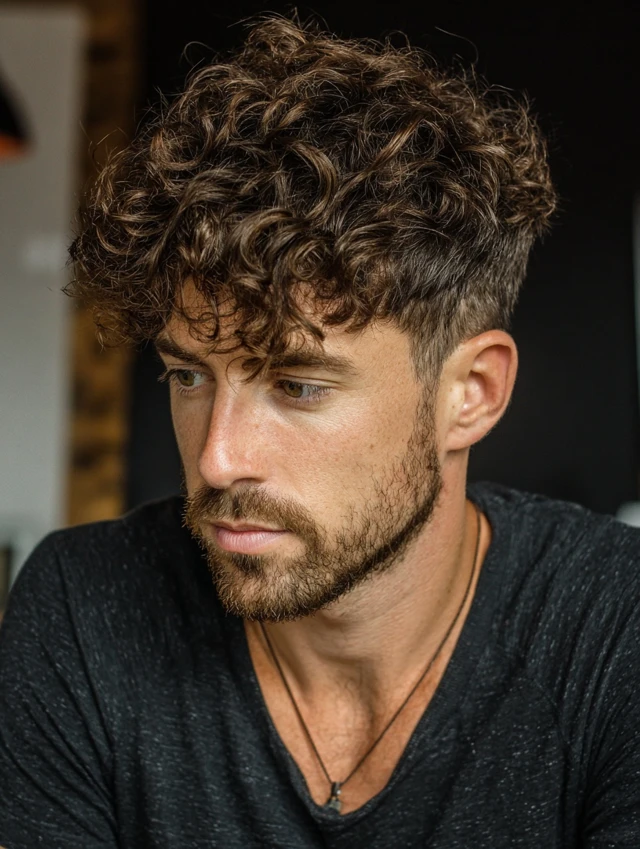 Curly hairstyles for men with a fade combine structure with natural texture. The fade keeps the sides clean and sharp, while curls add volume and personality on top. This contrast makes the style look intentional, not messy. It works across ages and personal styles, from casual to polished. The fade also reduces bulk, which helps curls sit better. Whether the curls are loose or tight, this hairstyle offers balance, shape, and easy everyday wear without overcomplicating grooming.