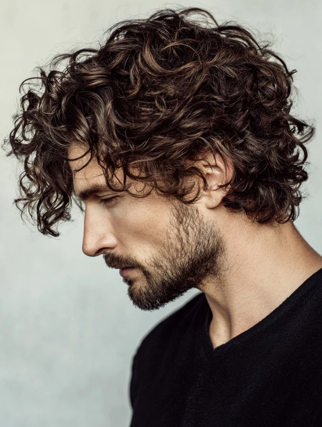Medium curls benefit from light pomade or curl-enhancing cream. Blow-drying or diffusing adds volume. This style works for everyday wear and semi-formal settings. Maintenance involves regular shaping to avoid overgrown sides.