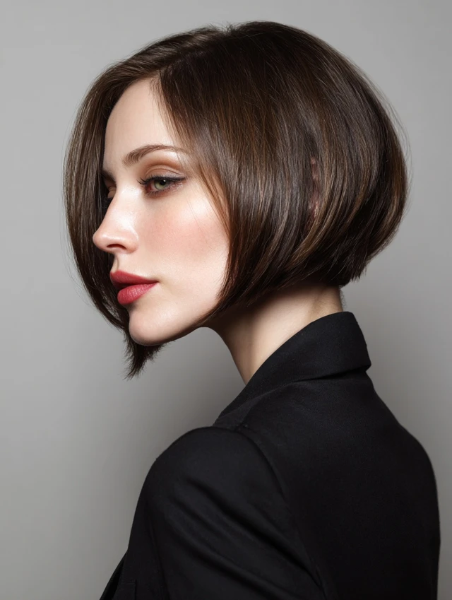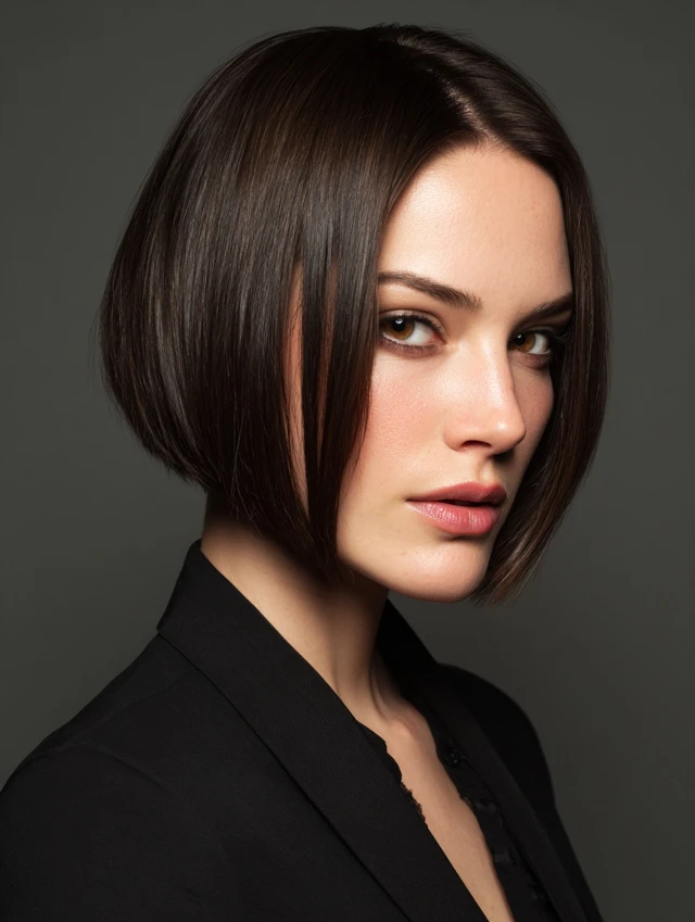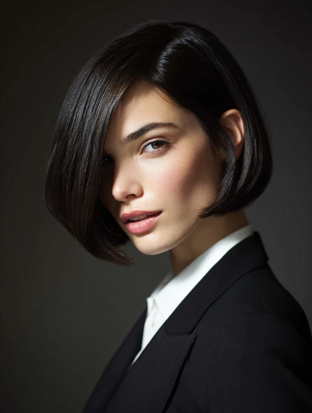 A sleek side-parted bob exudes sophistication and frames the face beautifully. Works for oval, heart, and square faces by emphasizing cheekbones and jawlines.