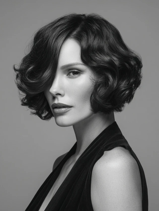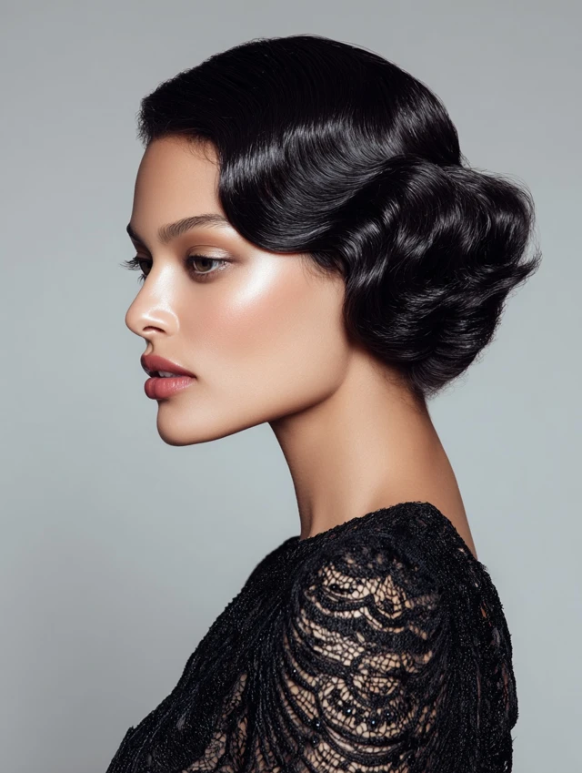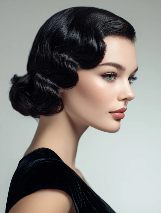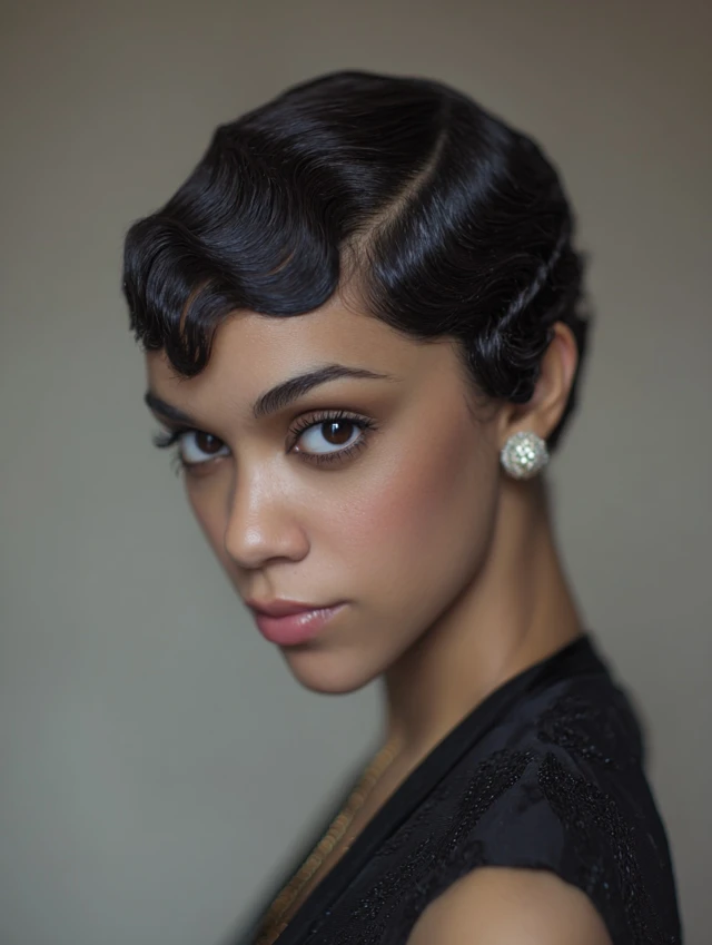 Classic finger waves give short hair a vintage, polished look. Works for oval and long faces, enhancing features with soft, sculpted waves.