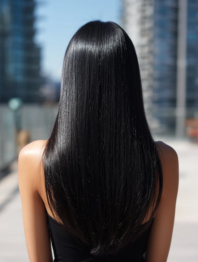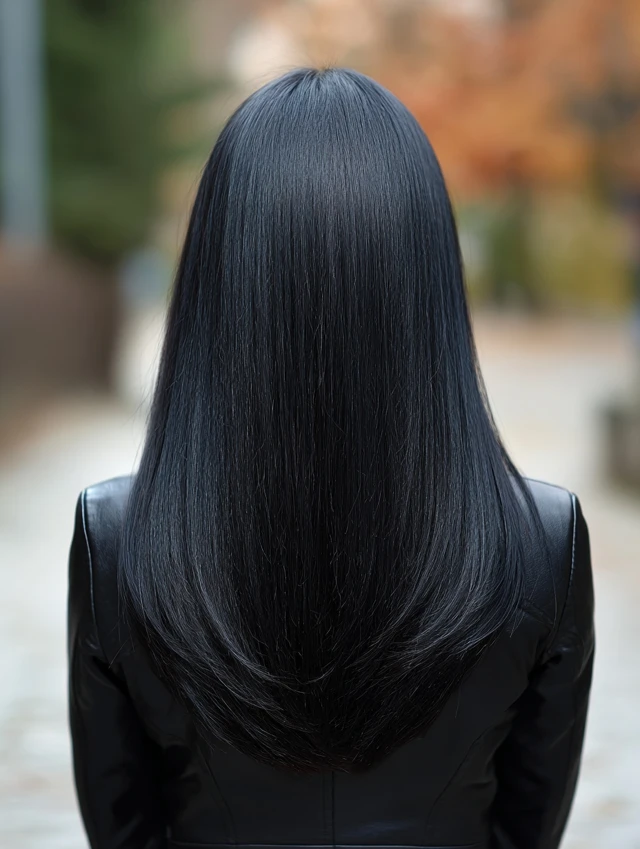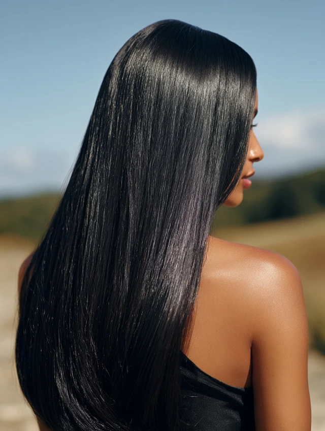 Natural black with a high-gloss finish is rising. Instead of flat jet black, this version reflects light and depth. It looks healthy and dramatic.