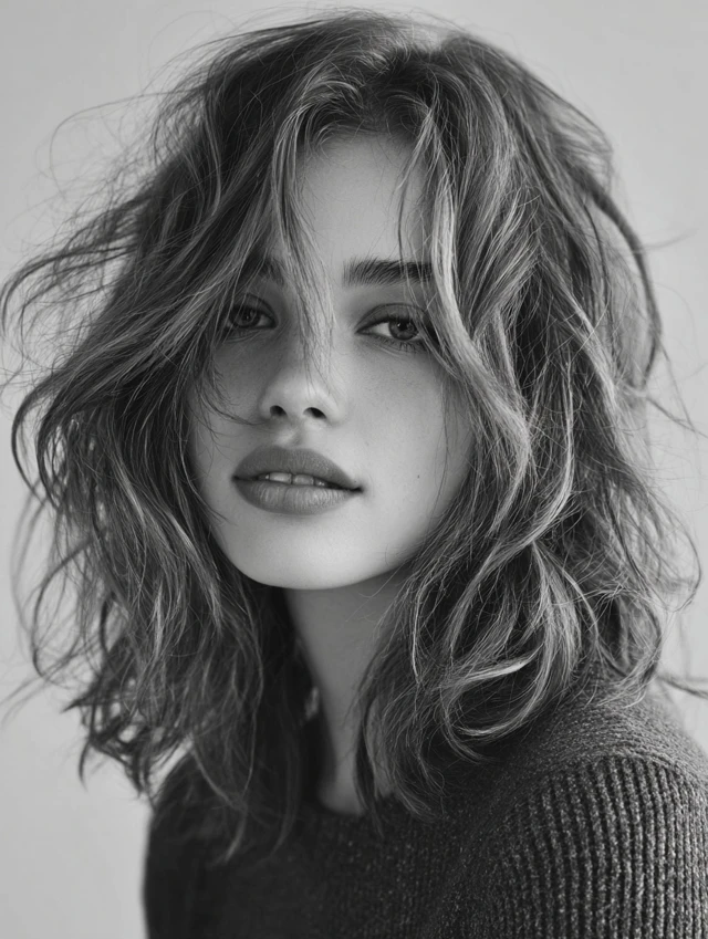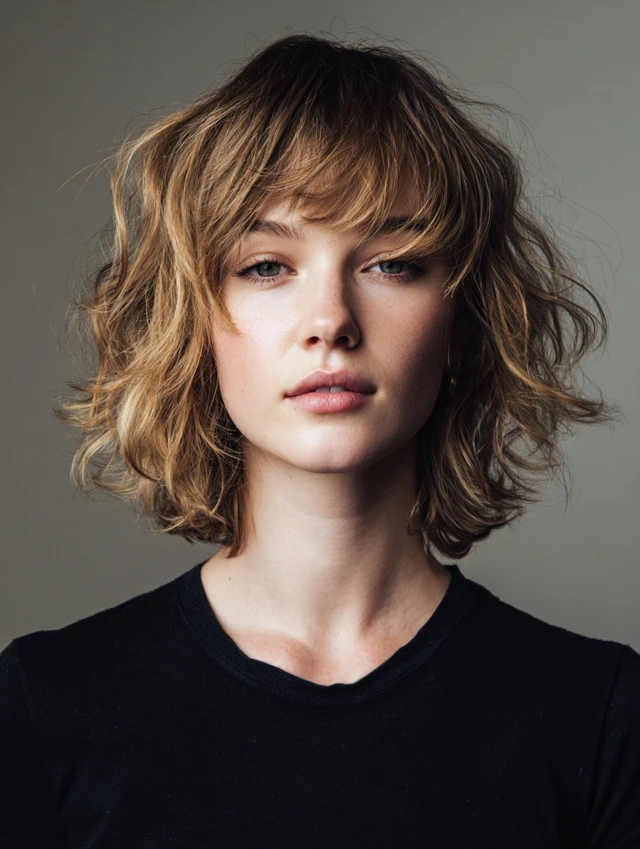 A shaggy bob enhances thin wavy hair by layering ends and creating soft texture. Works for round, oval, and heart-shaped faces by softening facial lines.