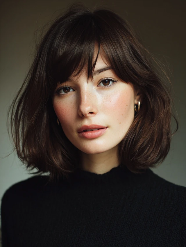 Use texturizing spray to enhance movement. Let the ends fall freely. This look fits creative spaces and casual settings. The fringe keeps the shape light instead of heavy.