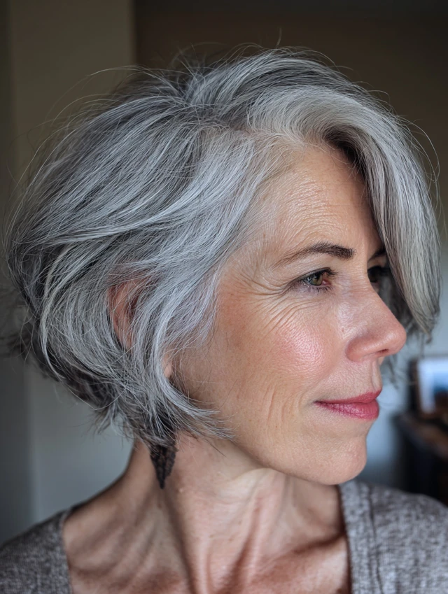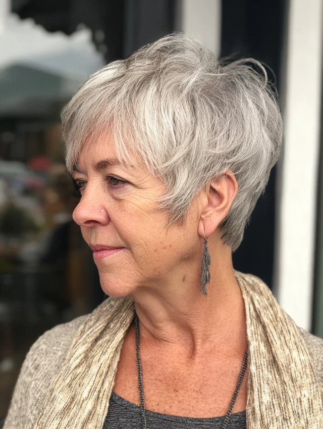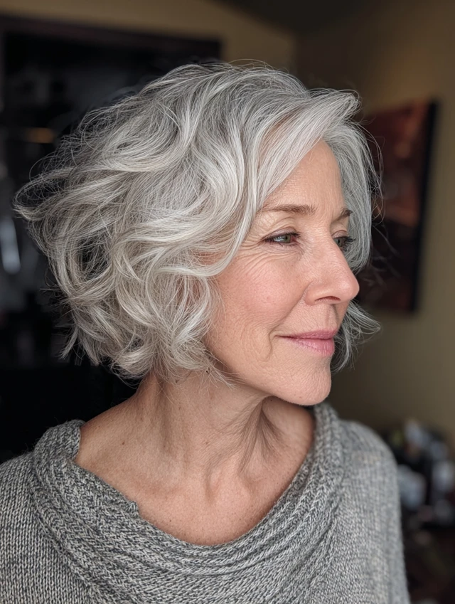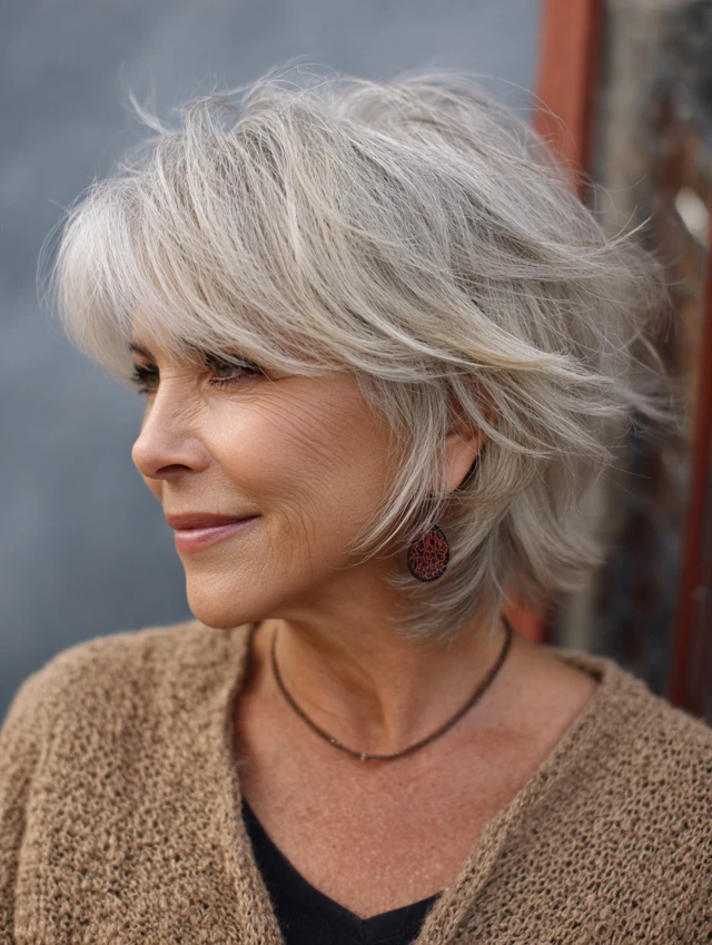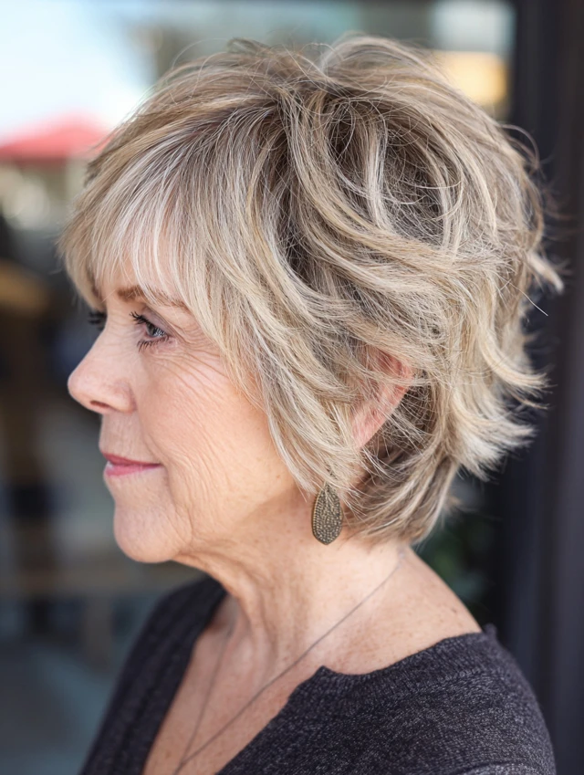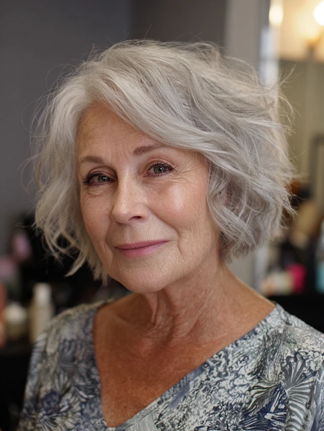 This style remains one of the most reliable hairstyles women over 60 choose. The short length lifts the neckline and brightens the face. Light layers add body, especially for fine hair.