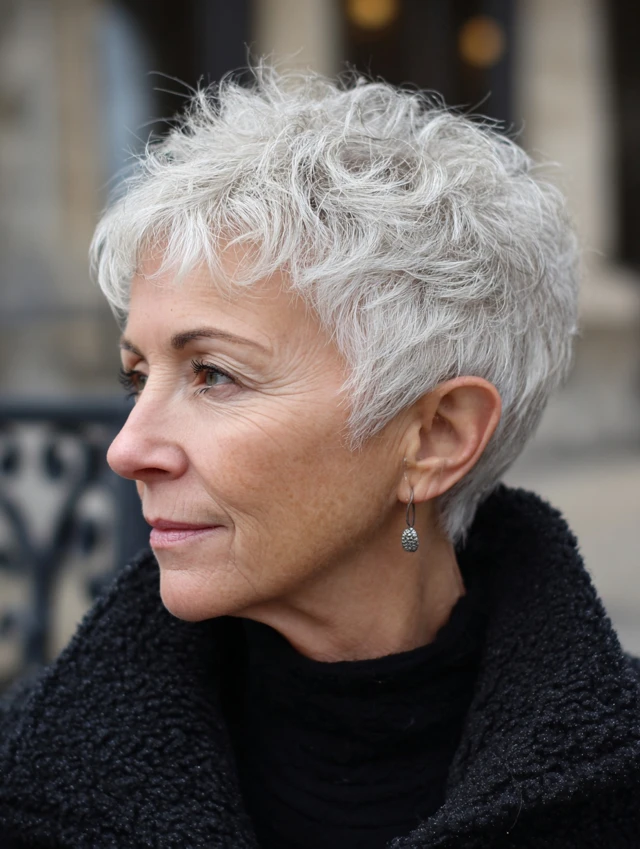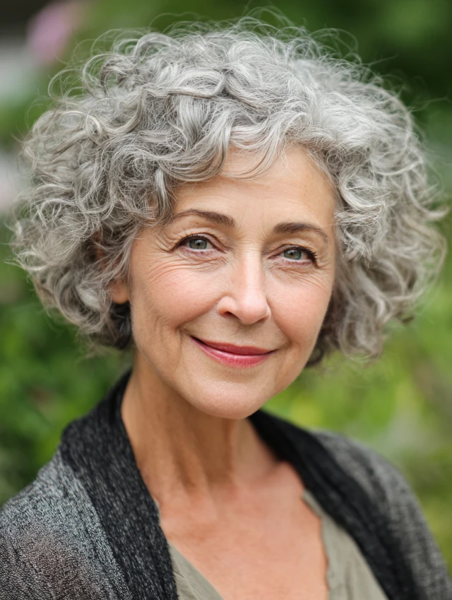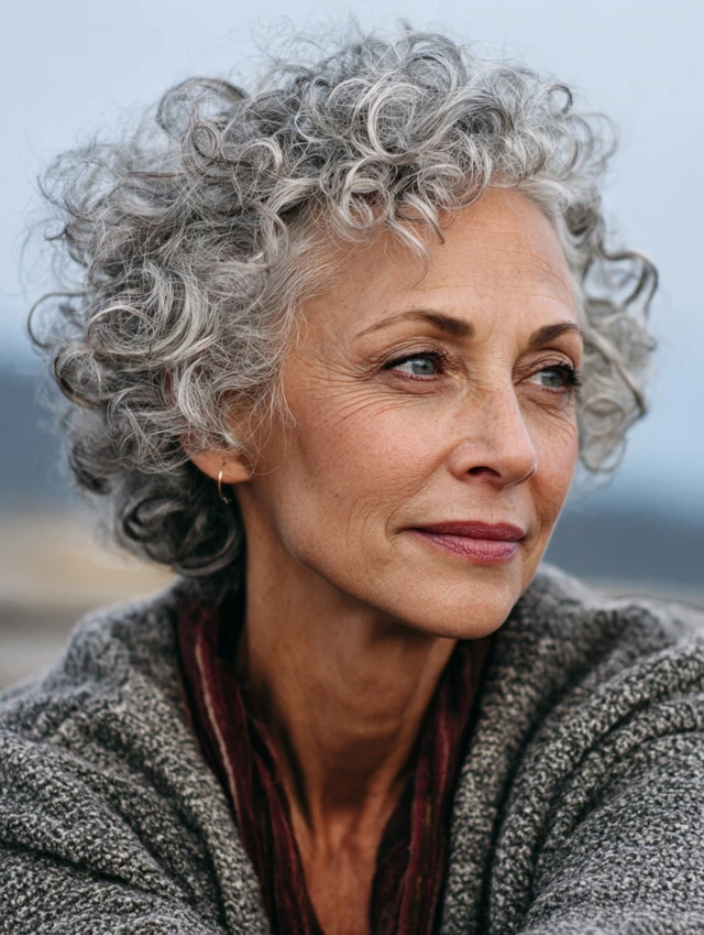 Natural curls shine in a short crop. Hairstyles women over 60 with curls should focus on shape and hydration. Layers prevent the triangle effect and add bounce.