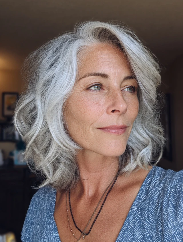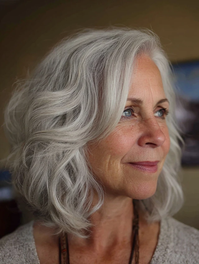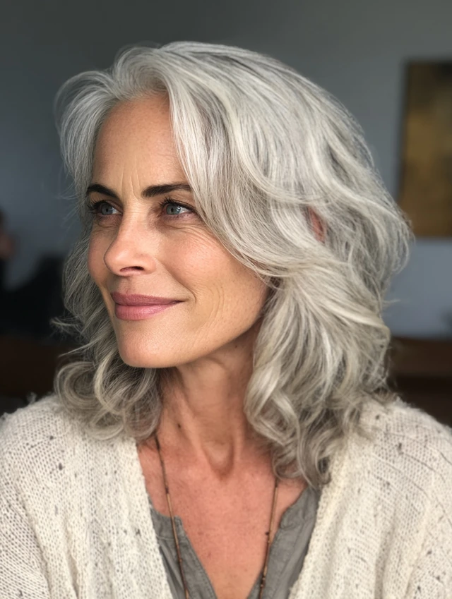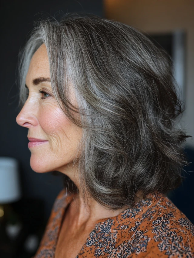 For those who prefer some length, this is a balanced option. Hairstyles women over 60 do not have to be short. Shoulder-length layers add movement without heaviness.