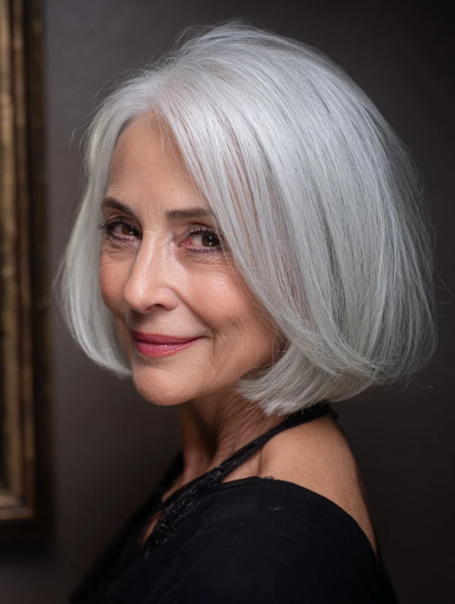 The chin-length bob creates structure and polish. It frames the jawline and keeps styling simple. This cut works well for straight or slightly wavy hair.