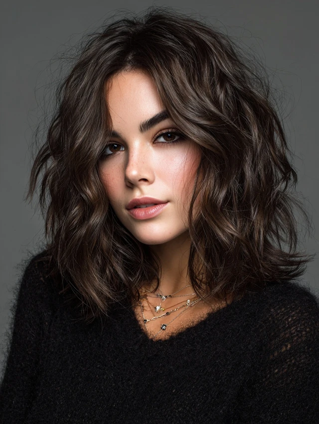 Loose waves paired with layers add width and softness around the face. This version flatters square or angular features and keeps the look effortless rather than stiff.