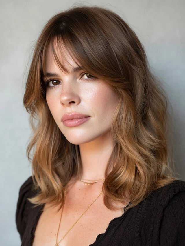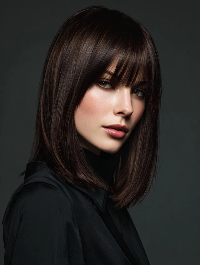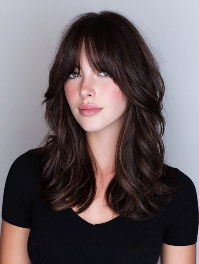 Straight to wavy textures respond easily. Blow-dry bangs first with a small brush. It fits workdays and evenings out. Fringe trims every few weeks keep everything polished.