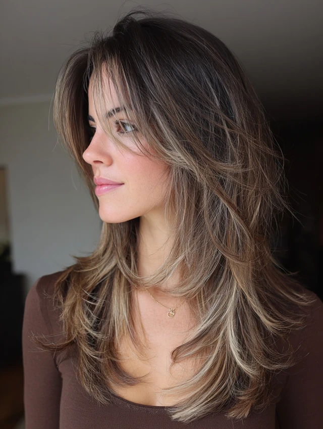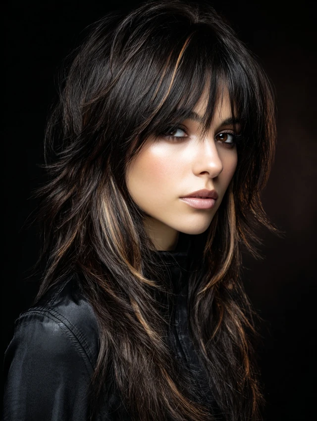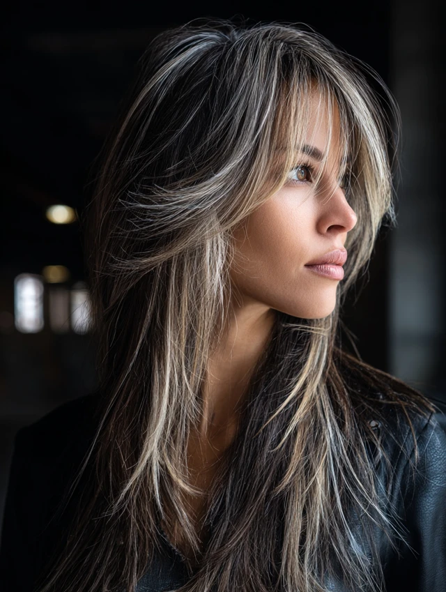 Adding highlights gives the long wolf cut more depth. Lighter pieces emphasize layers and movement. This works especially well on dark bases where contrast stands out.