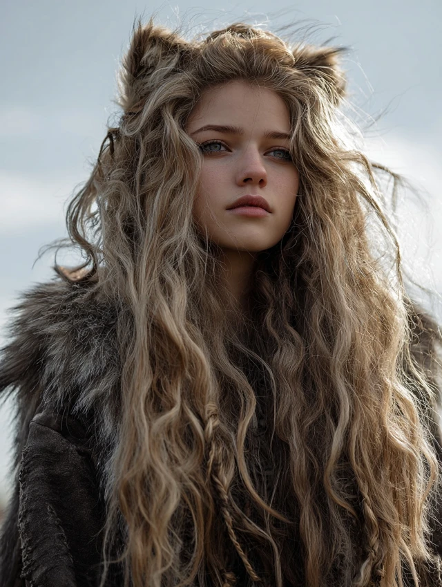 Blow-dry with a large round brush for smooth volume. Add light waves for movement. This option works for those who want the long wolf cut but prefer subtle texture over dramatic contrast.