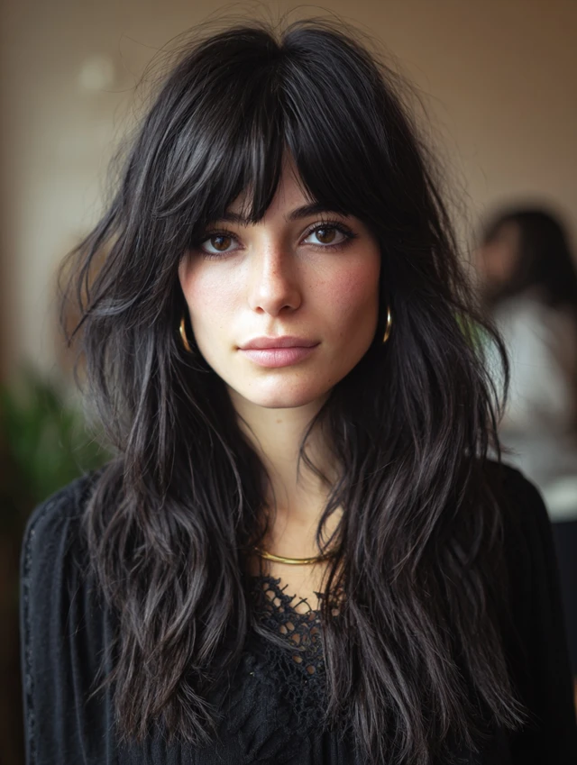 Classic Long Wolf Cut with Curtain Bangs