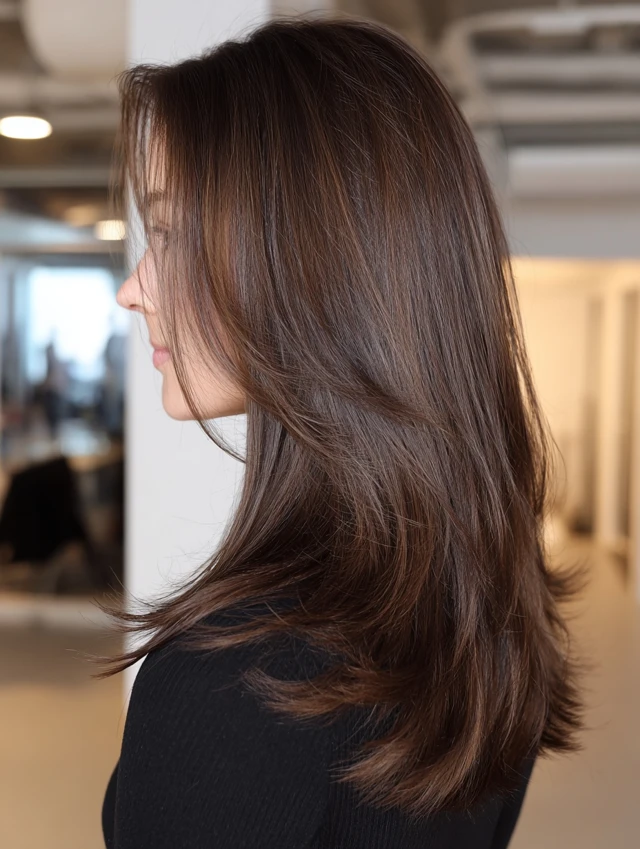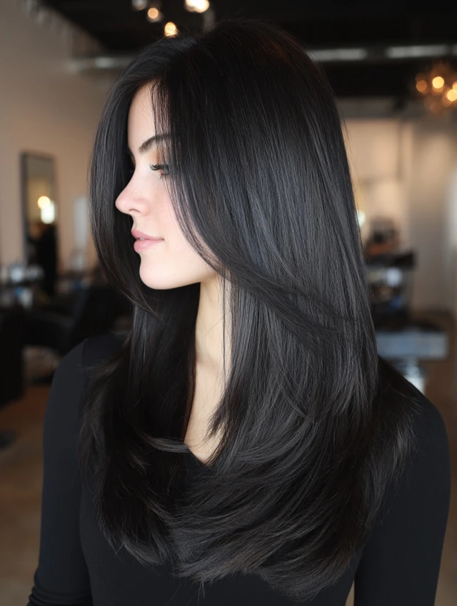 It also adapts to many face shapes. Round faces benefit from the vertical length. Oval faces handle the layers easily. Square faces soften with feathered edges. Because the length stays intact, you can still tie it up or braid it when needed.