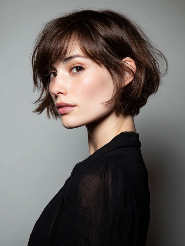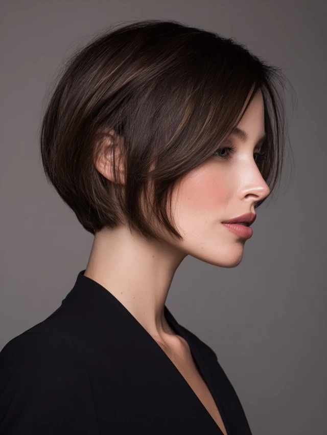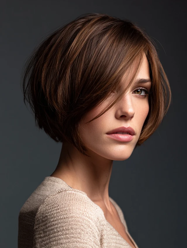 This bob sits near the jaw and uses light layers to avoid a boxy outline. The soft shape frames the face and keeps the look neat without constant blow-drying. A side part adds easy volume.