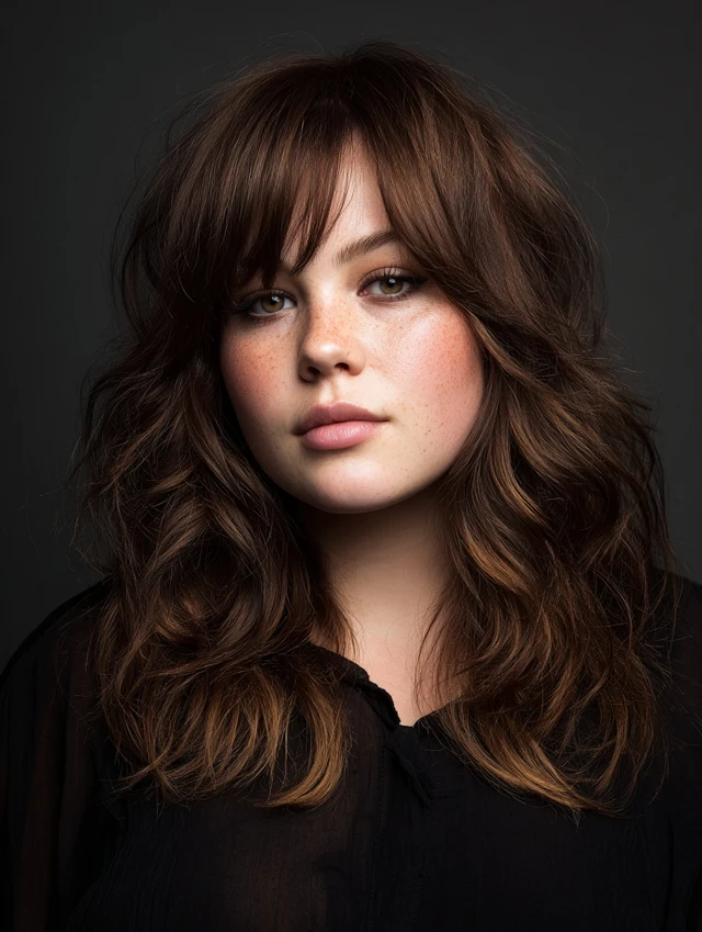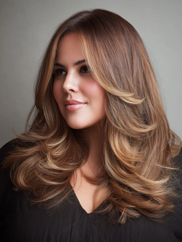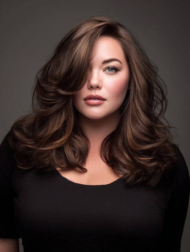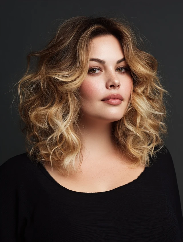 Loose waves add motion and soften facial features instantly. This style works beautifully on fuller faces because the texture breaks up straight lines and adds vertical flow through the length.