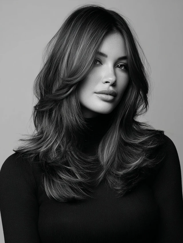 This version uses blended layers through the crown and mid-lengths to create lift and fluid movement. It flatters round and full faces by narrowing the outline and pulling attention upward. Medium to thick hair adapts especially well.