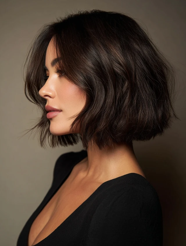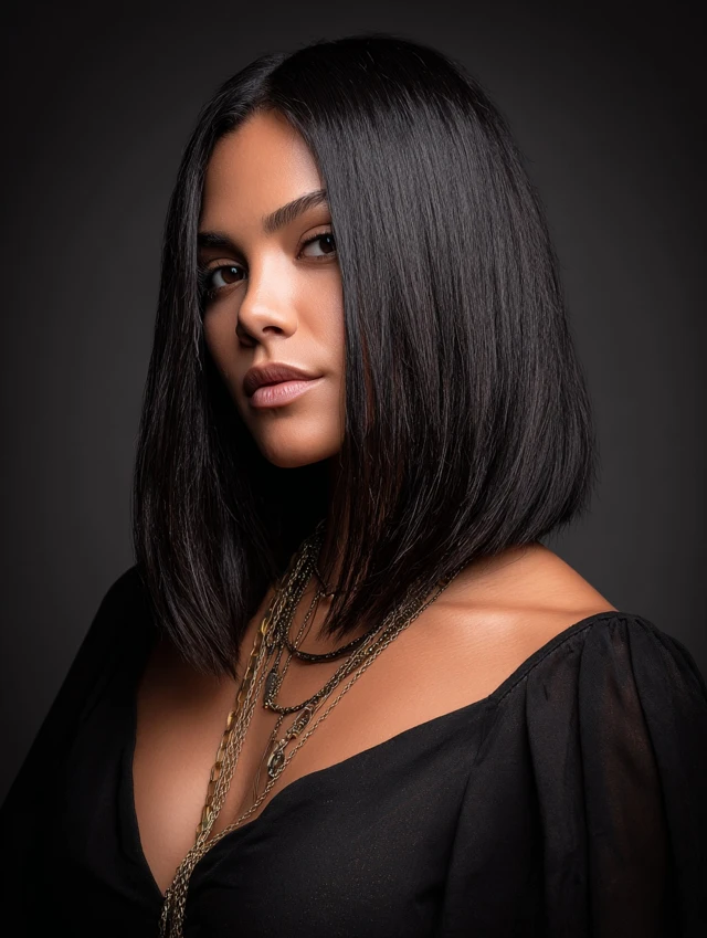 A lob grazing the collarbone offers clean structure with flexibility. Slightly blunt ends make hair look thicker, while subtle internal layers prevent heaviness.