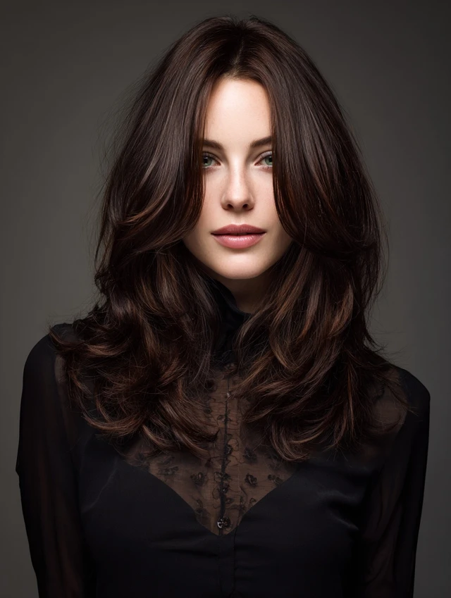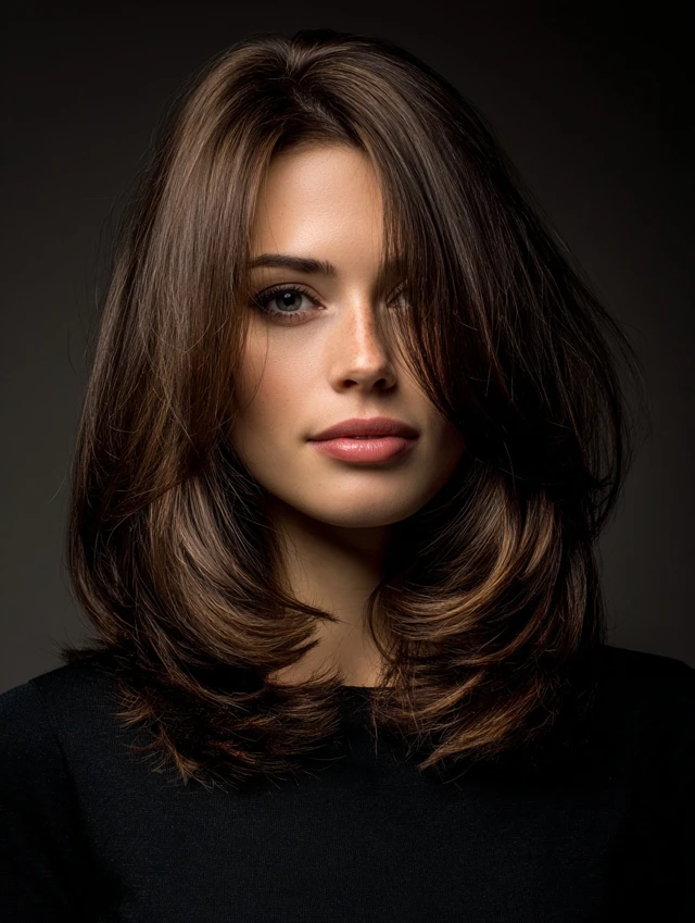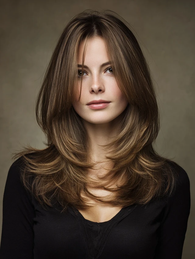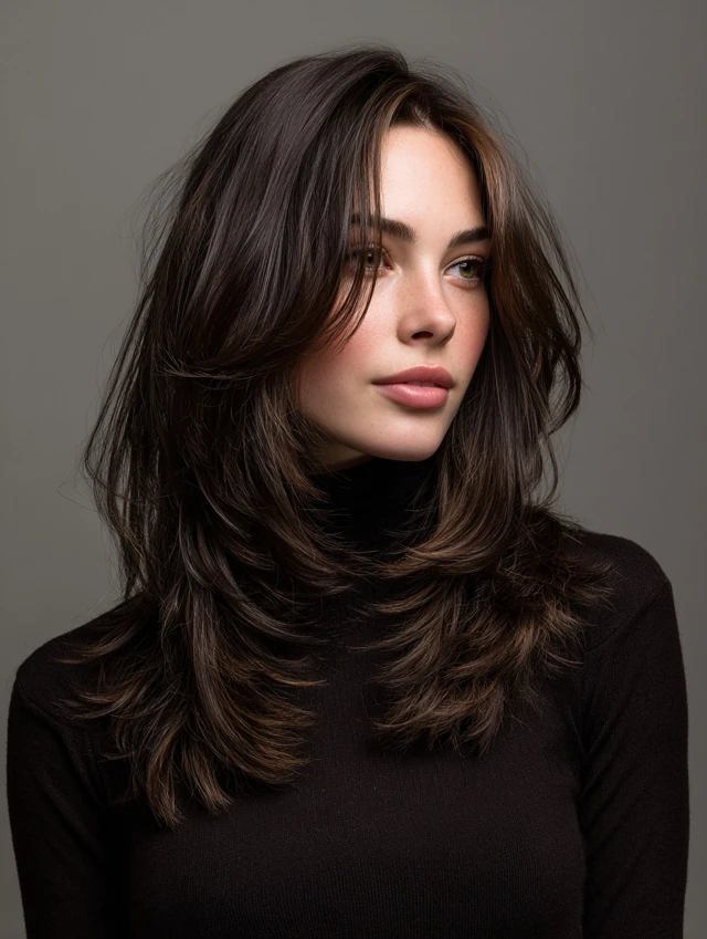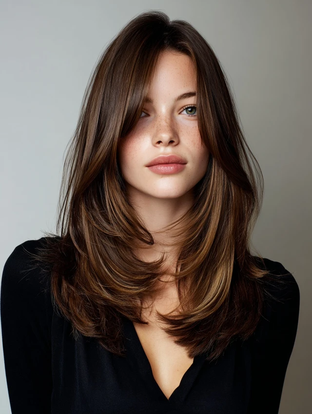 This version keeps length past the shoulders while carving layers through the interior. It flatters most face shapes and softens strong jawlines. The layered shape distributes weight evenly and prevents the ends from feeling bulky.