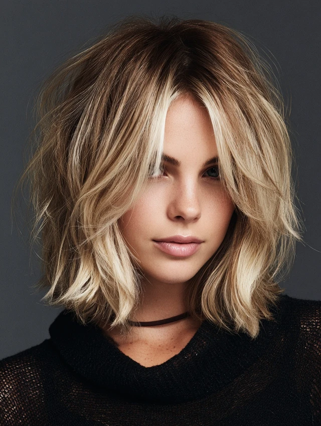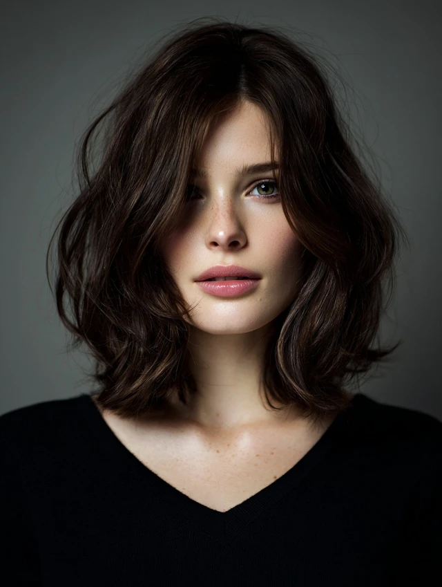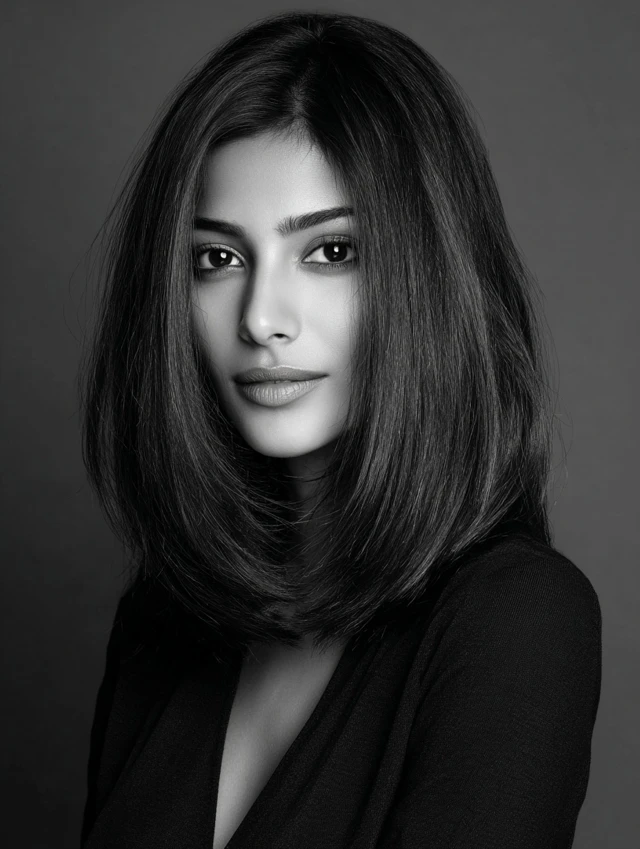 Uneven ends and point-cut layers add movement and reduce heaviness. The look feels modern and relaxed instead of stiff. This version flatters fuller faces by keeping volume controlled around the cheeks.