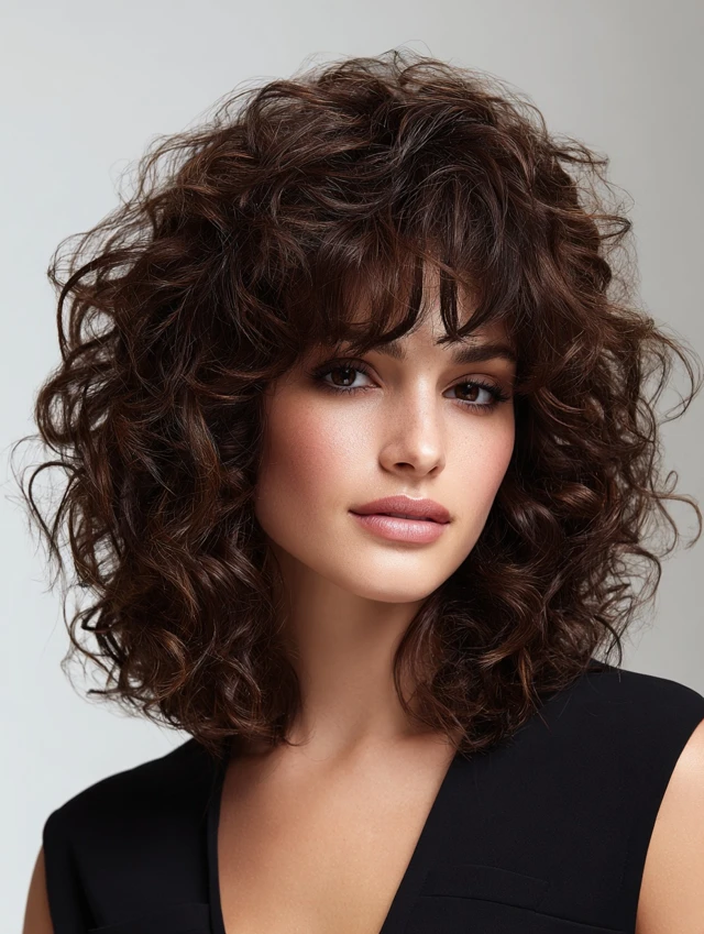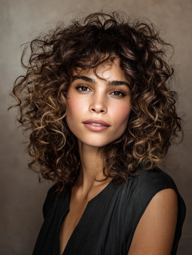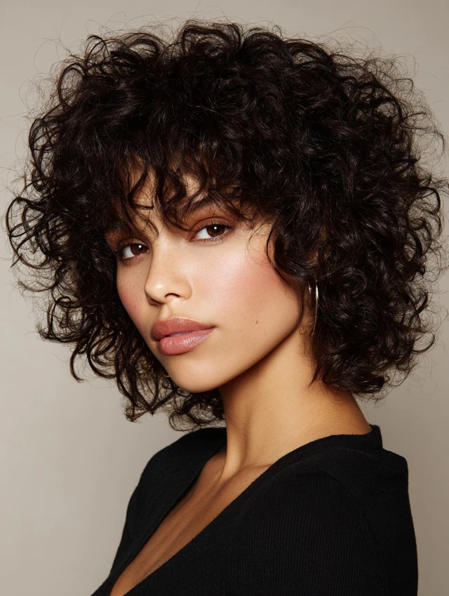 Layers stack through curls to prevent heaviness at the sides while keeping bounce on top. The shape adds height and keeps ringlets defined rather than bulky.