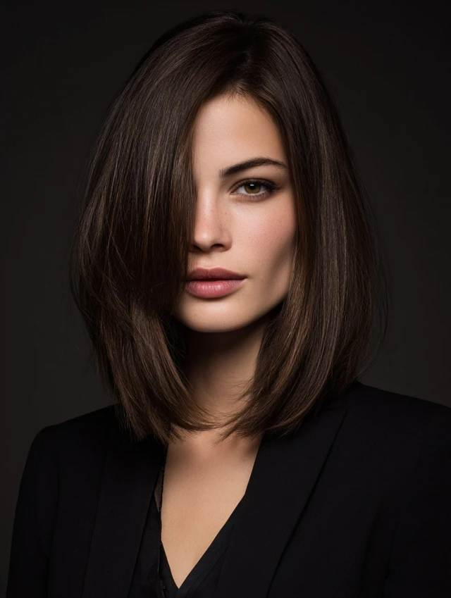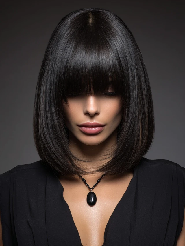 Straight or dense hair benefits most. Flat-iron lightly and add root spray. It suits formal settings and tailored outfits. Regular trims keep the edge crisp.