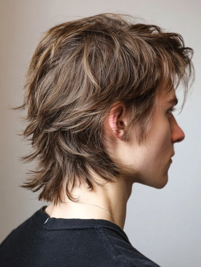 A textured modern mullet focuses on choppy layers. The top has movement and separation instead of a flat finish. This works well for thick hair because it removes bulk.