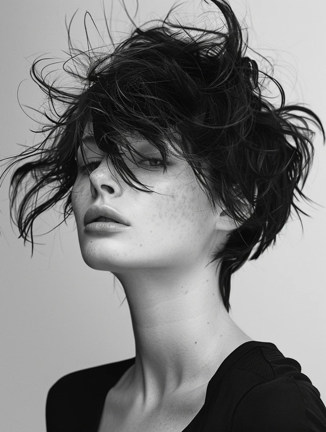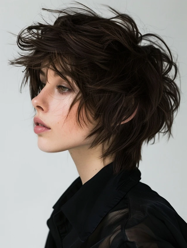 Finger-comb and use texturizing spray or mousse to define layers. This style is forgiving as it grows out, ideal for casual, creative, or edgy looks.