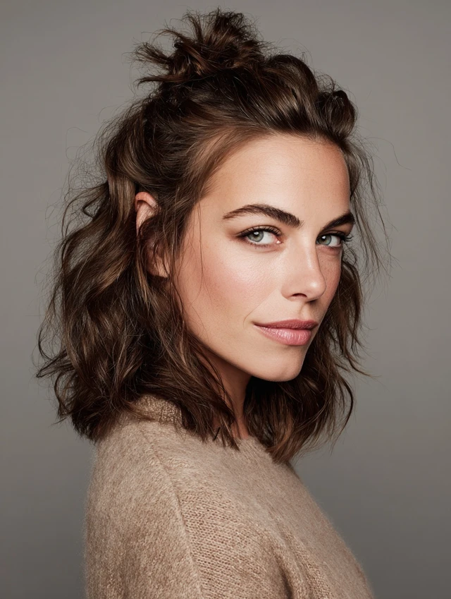 Short half-up half-down hairstyles succeed because they balance shape and softness. Lifting the crown adds height, which flatters most face shapes. Leaving the bottom loose keeps the look relaxed and modern instead of stiff.