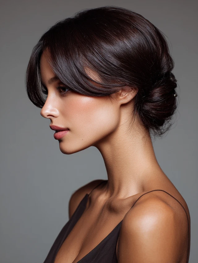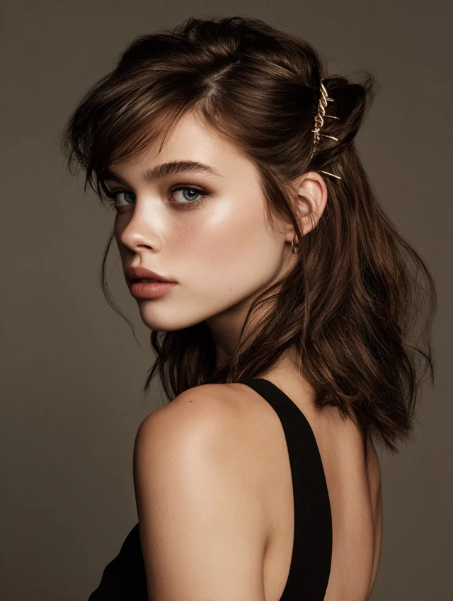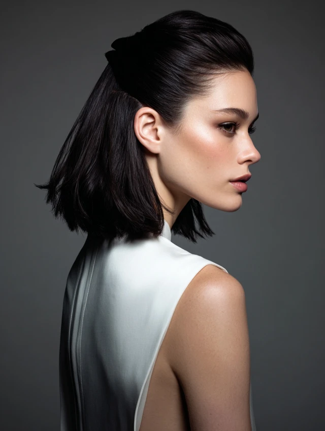 This version uses a claw clip or barrette to sweep the top section back. The clean line feels neat without looking rigid. It flatters most face shapes and works especially well when growing out bangs.