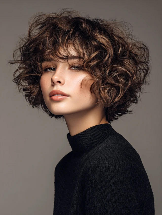Curly Short Layered Bob with Bangs
