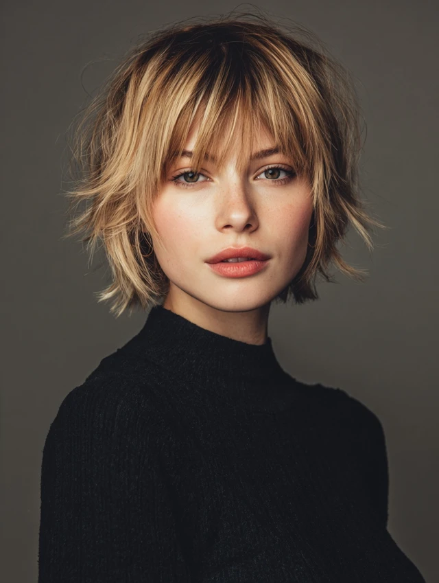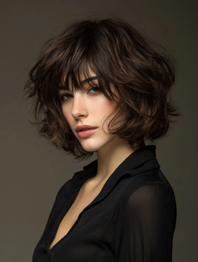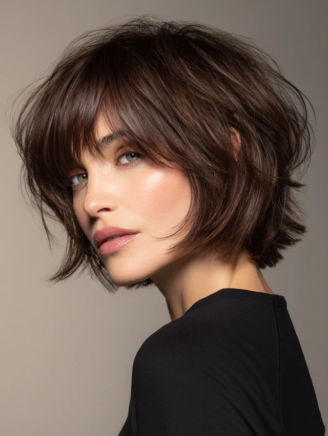 A short layered bob with bangs delivers shape, movement, and face framing in one clean package. It can look sharp, playful, or relaxed depending on layering and fringe style. That versatility makes it a long-term favorite.