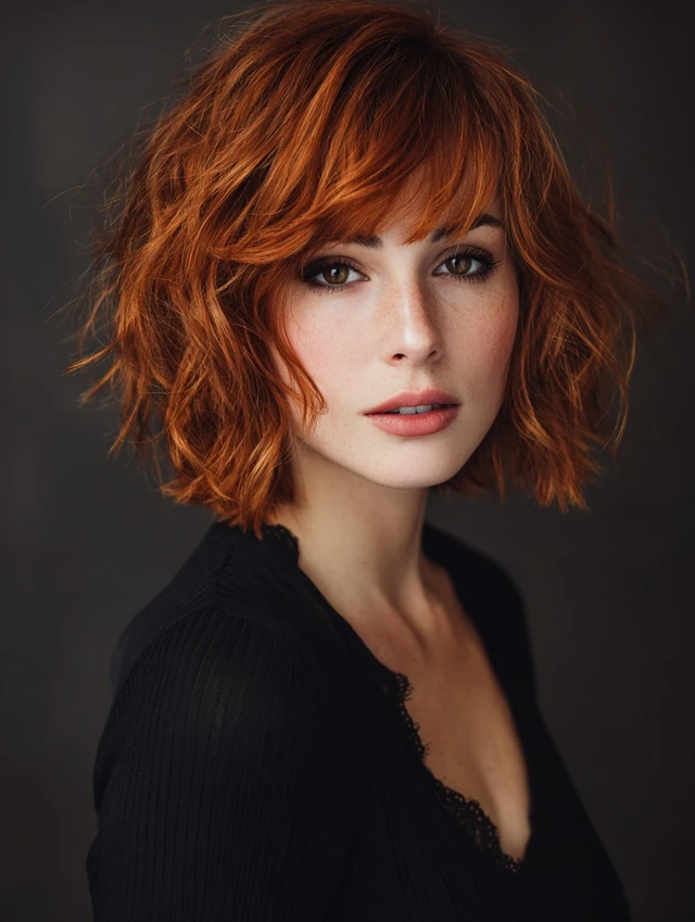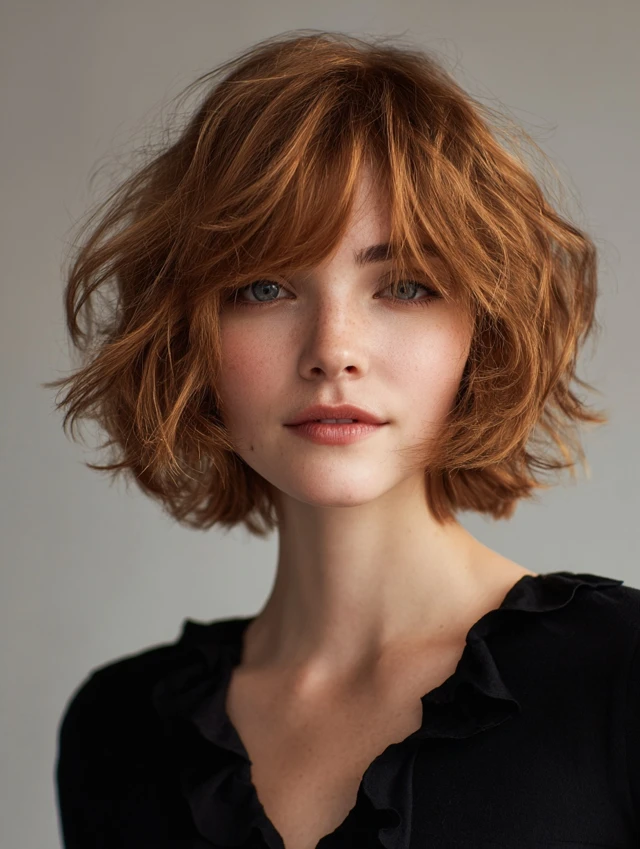 Wavy Short Layered Bob with Bangs