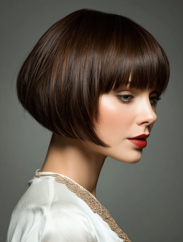 Classic Short Layered Bob with Straight Bangs