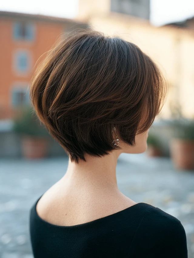 Trim every four to six weeks to maintain the stacked shape. Blow-dry with lift at the crown to keep volume defined. Avoid heavy products that flatten the layers.