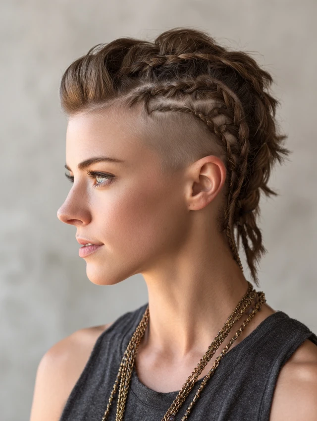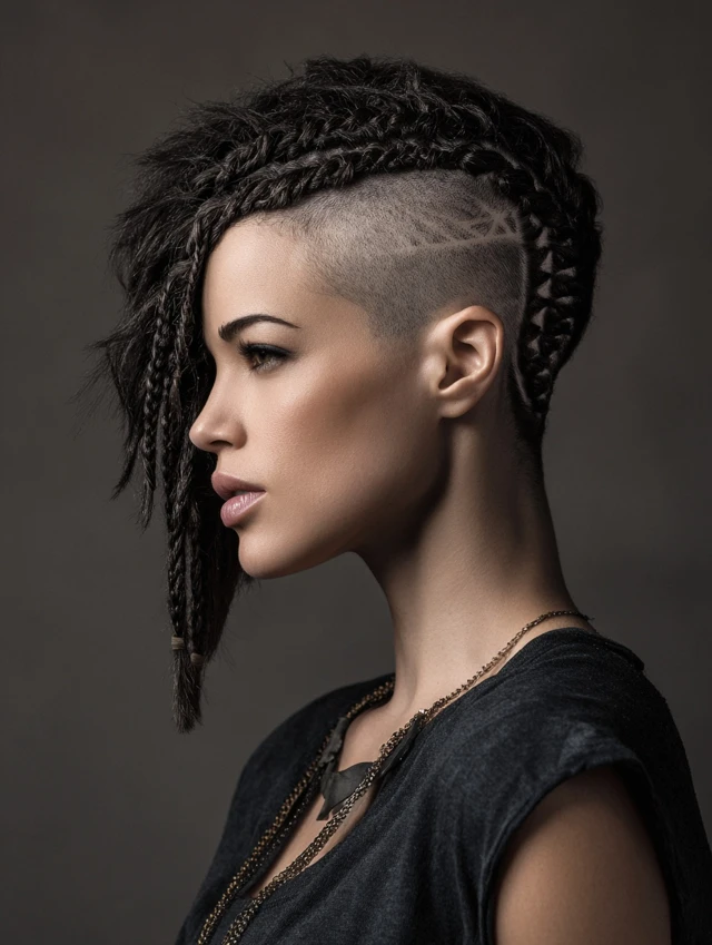 Incorporate braids on the shaved side for a creative twist. Works for oval and diamond-shaped faces, adding dimension and visual interest.