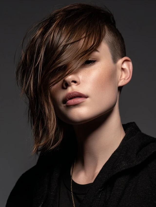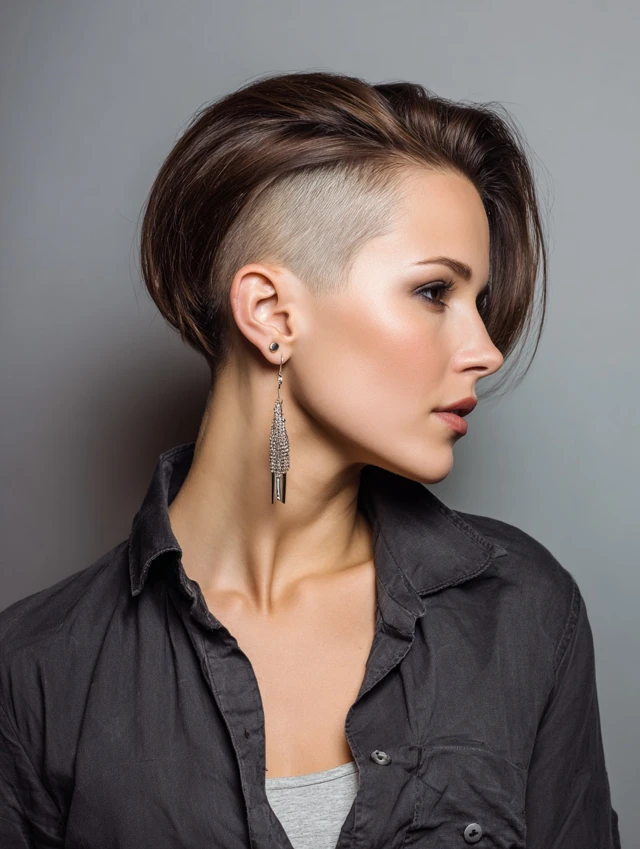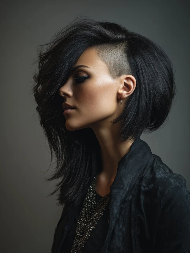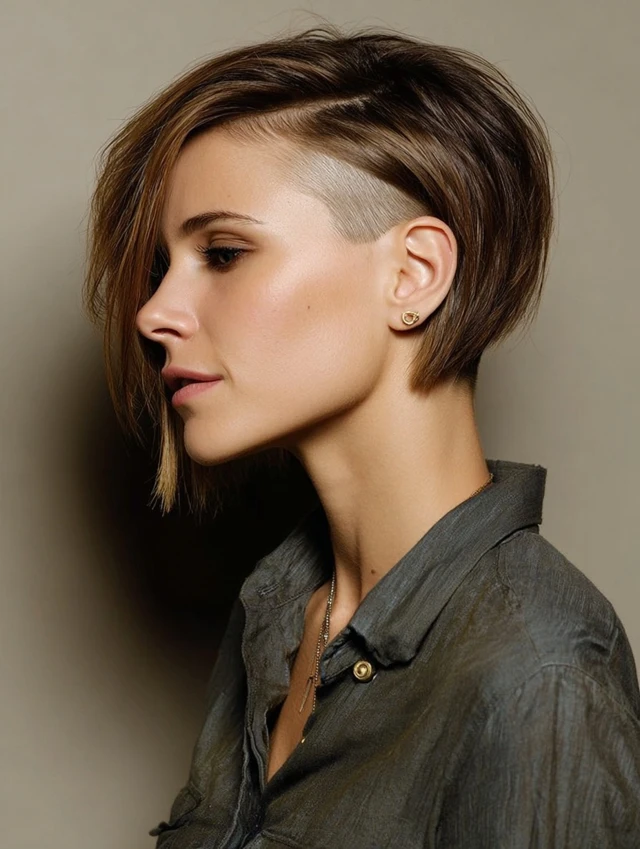 A subtle undercut on one side keeps the style edgy but wearable. Works for oval, round, and heart-shaped faces.