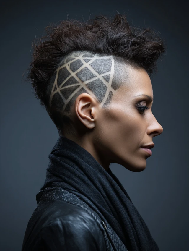 Shave geometric patterns or lines into the shaved side. Works for oval and square faces by adding artistic flair.