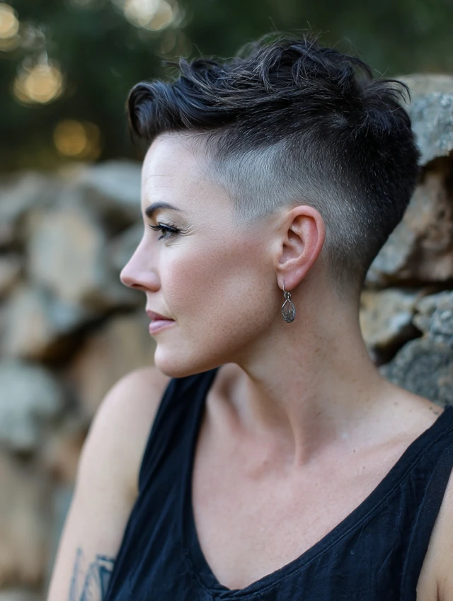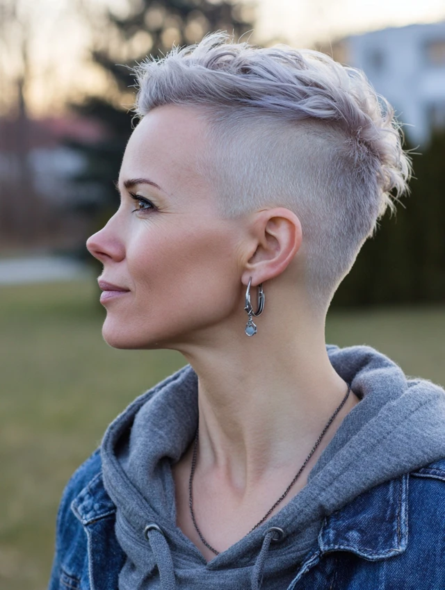 It works for straight and wavy textures. Keep the shaved area maintained with frequent trims. This look feels edgy and modern without extra styling time.