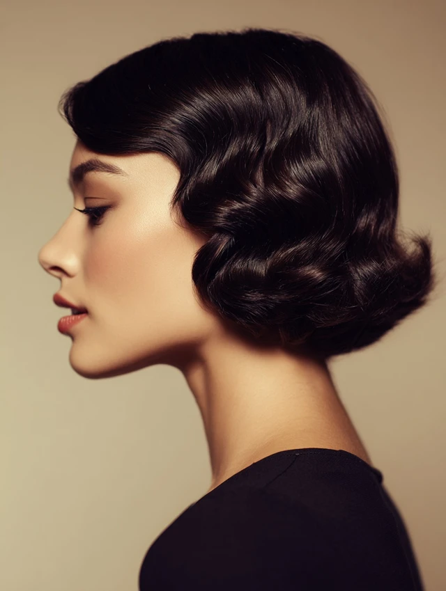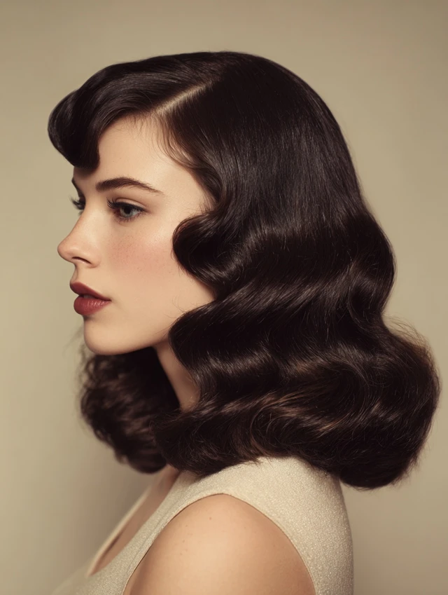 Deep, S-shaped waves for a glamorous vintage vibe. Works for oval and square faces, emphasizing elegance.